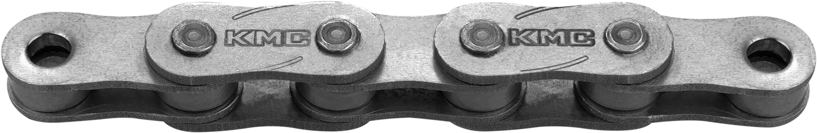 e1 EPT LongDeveloped for use on high-performance e-bikes, the narrow e-series chains are also the first choice for classic bikes. Long version with 130 links, highly effective EPT rust protection, part of KMC's 3,500 km+ programme. e1 EPTDesigned for the use on powerful e-bikes, the e-Series chains are also a high quality choice for classic bikes with a great durability and shifting performance. Highly effective EPT antirust coating and part of KMC's 3,500km+ programme. e101 EPTWide high quality bushed chain with an optimal power transmission. In combination with a wide KMC chainring and sprocket, part of the 10,000km+ programme with a guaranteed mileage of 10,000 km and more. Z1eHX Wide EPTEconomic wide e-bike chain with a great price-performance ratio that will also satisfy riders of classic bikes. Highly effective EPT antirust coating. Z1eHX Narrow EPTEconomic narrow e-bike chain with a great price-performance ratio that will also satisfy riders of non-motorized bikes. Highly effective EPT antirust coating. Z1eHX Narrow EPT LongEconomic narrow e-bike chain with a great price-performance ratio that will also satisfy riders of non-motorized bikes. Long version with 128 links. X101 GoldThe X-Series quality for wide single speed systems. Due to it's bushed construction extremely durable and precise and thus our hero for track and BMX, brass coated. X101 SilverThe X-Series quality for wide single speed systems. Due to it's bushed construction extremely durable and precise and thus our hero for track and BMX, Nickel plated. Z1 Wide EPTEconomical wide hub chain with anti-drop design to prevent chain drops, coated with KMC's most advanced rust protection EPT. Ideal for touring, city and fixed gear bikes. Z1 Wide EPT LongEconomical wide hub chain with anti-drop design to prevent chain drops, coated with KMC's most advanced rust protection EPT. Long version with 128 links. Z1 Wide GoldWide hub gear chain with anti-drop design for a wide range of uses from commuting to BMX, brass plated. Z1 Wide SilverEconomical wide hub derailleur chain with anti-drop design to prevent chain drops. Ideal for touring, city and fixed gear bikes, glossy Nickel plating. Z1 Wide BrownEconomical wide hub gear chain with anti-drop design to prevent chain drops, ideal for touring, city and fixed gear bikes. Z1 Narrow EPTWide hub gear chain with anti-drop design and KMC's most advanced rust protection EPT. Ideal for various types of use from commuting to BMX. Z1 Narrow BrownEconomical narrow hub derailleur chain with anti-drop design to prevent chain drops, ideal for touring, city and fixed gear bikes. S1 Wide RBSmooth running wide quality chain for hub gear/single speed systems. With RB rust buster corrosion protection. S1 Wide BrownSmooth running quality chain for hub gear/single speed systems. S1 Wide GreenSmooth running fancy quality chain for hub gear/single speed systems. B1 Wide BlackWide quality single speed/hub gear chain with with a high degree of reliability due to it's bushed construction. K1SL Wide GoldSuper light wide single speed chain with hollow pins and slotted inner and outer plates. TiN coating for a great look and smooth running. K1SL Wide SilverSuper light wide single speed chain with hollow pins and slotted inner and outer plates, shiny nickel coating for effective rust protection. K1SL Narrow GoldSuper light narrow single speed chain with hollow pins and slotted inner and outer plates. TiN coating for a great look and smooth running. K1SL Narrow SilverSuper light narrow single speed chain with hollow pins and slotted inner and outer plates, shiny nickel coating for effective rust protection. K1 Narrow SilverQuality chain for all narrow single speed and hub gear systems, shiny nickel coating for effective rust protection. K1 Wide Silver/BlackWide quality chain for single-speed or hub gears, good running characteristics. HL1 Wide SilverHalf link chain for all wide single speed and hub gear systems. This type of chain is the solution to reach the ideal chain tension, if the length of the chain can‘t be properly adjusted.